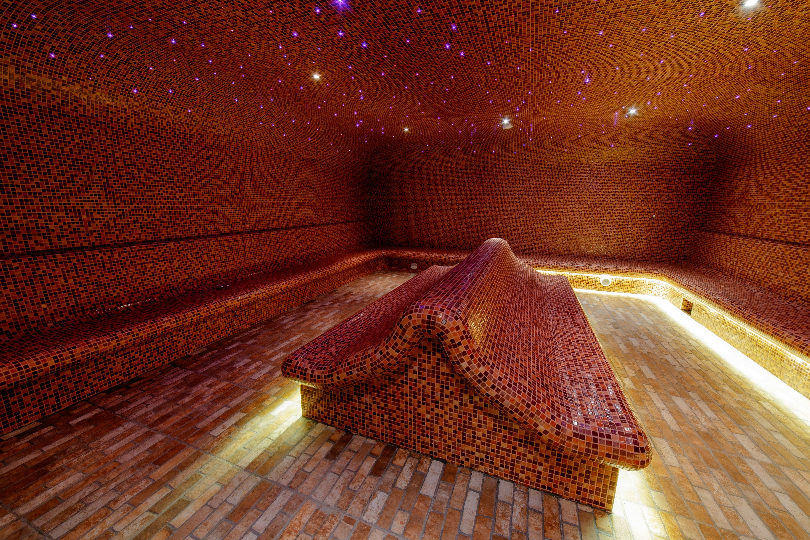 - NEW! ТУРЕЦКИЙ ХАМАМ, 100% влажность, вместимостью до 60 человек единовременно, t – 45-50 °C.